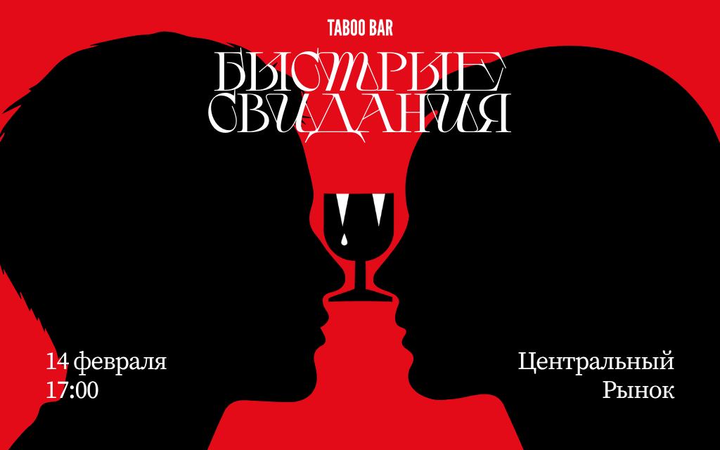 Taboo Bar приглашает на вечер быстрых свиданий — формат, где за несколько минут можно почувствовать симпатию и найти того, с кем захочется продолжить общение.Лёгкий флирт, уютная атмосфера Центрального рынка и авторские коктейли от Taboo Bar создадут идеальные условия для знакомств без неловкости и ожиданий.