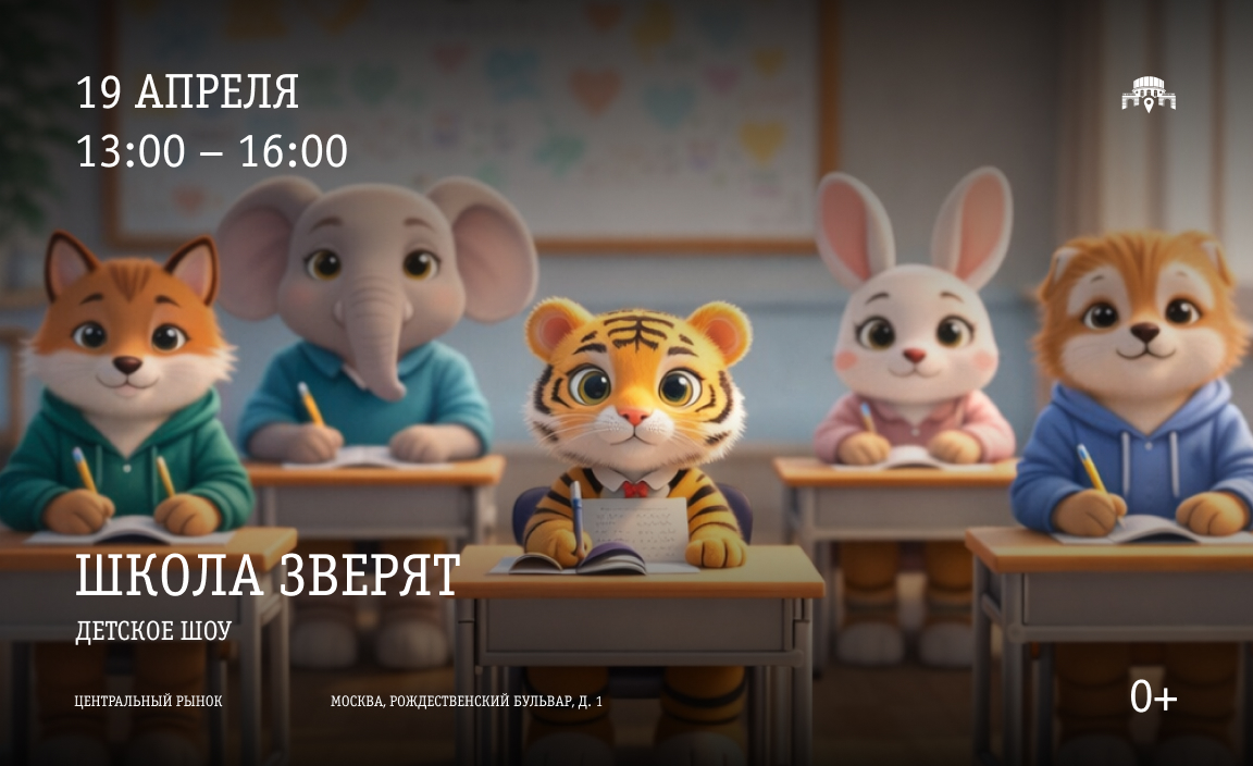 Каждый ребёнок станет частью команды зверят, пройдёт «школьные испытания» и получит заряд радости, смеха и ярких эмоций.